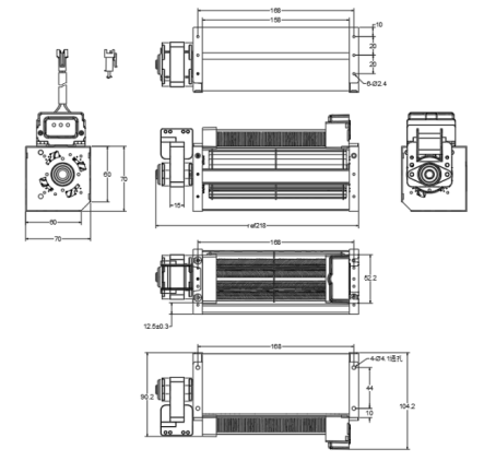 風(fēng)輪尺寸:50*148mm,50是風(fēng)輪直徑,葉片長(zhǎng)度是148mm,單相罩極異步電機(jī),電壓120V /60Hz或220-240V/50Hz,額定轉(zhuǎn)速1500-2100rpm,風(fēng)速3.5-6.0M/S,